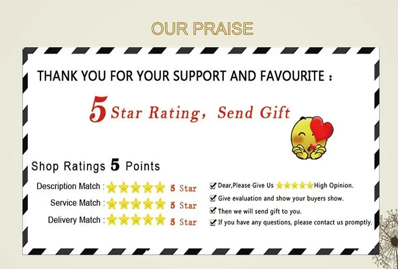 If you are satisfied with us, please leave positive feedback and give us 5 stars. Your affirmation and suggestions will also help us do more long-term work better. If you have any questions, feel free to contact me at any time. Best regards